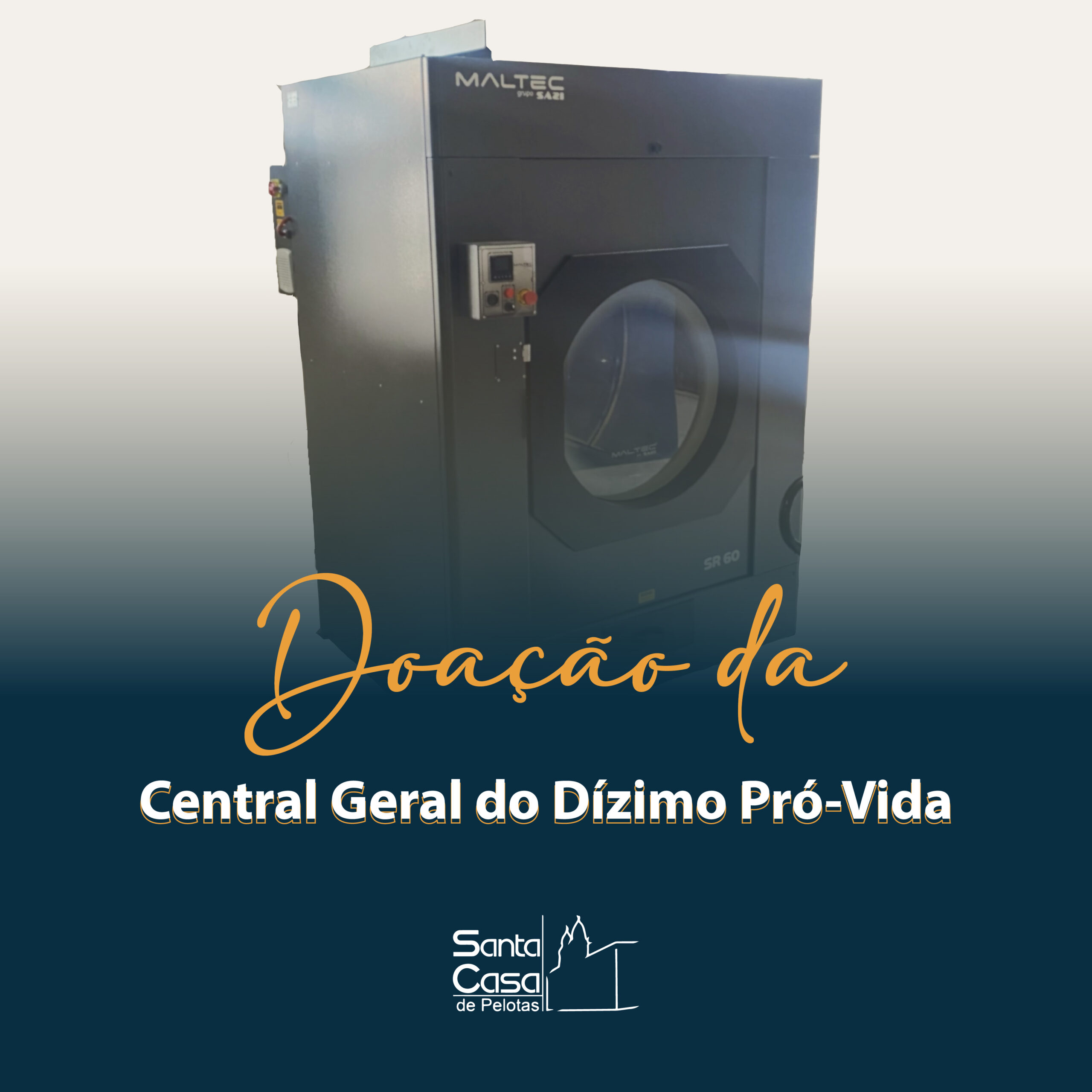 Através da Central Geral do Dízimo Pró-Vida (CGD), a Santa Casa de Pelotas recebeu a Maltec SR60, secadora de roupas industrial com capacidade de 60 kg.